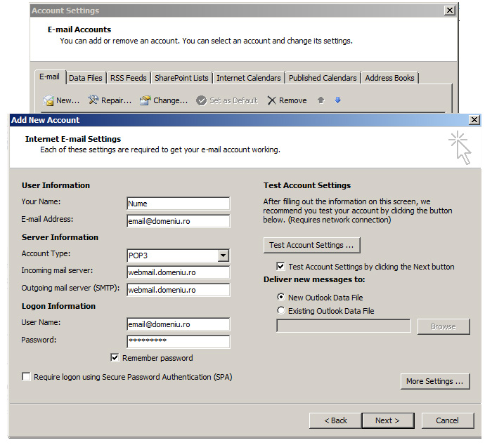 - POP3 server / nume de gazda: webmail.domeniu.ro