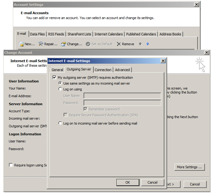 - Pentru acces de pe Outlook sau telefon se configureaza astfel: