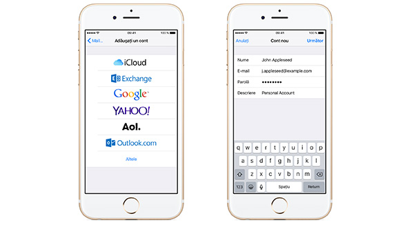 - Se apasa succesiv : Configurări > Mail, Contacte, Calendar > Adăugaţi un cont > Altele
